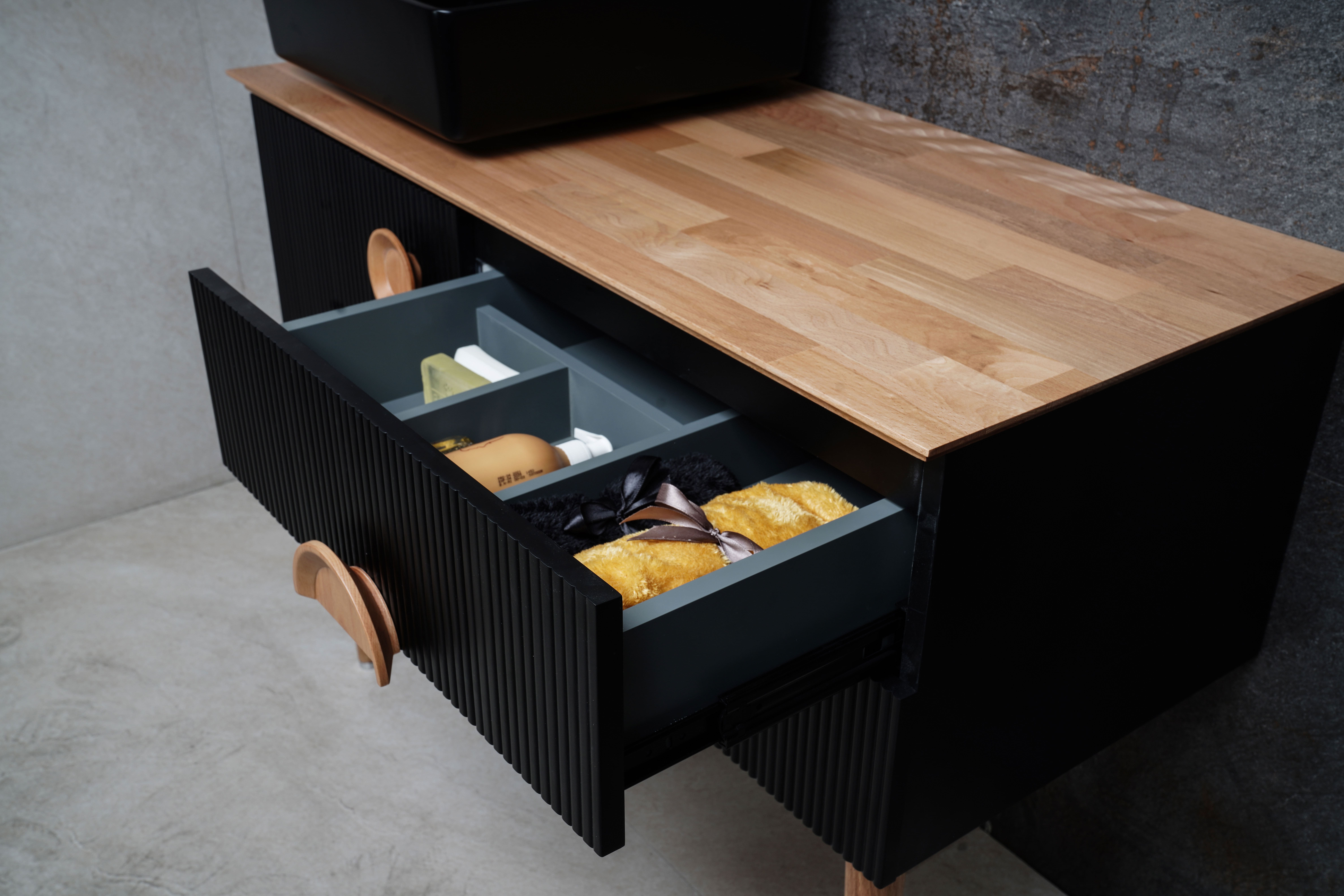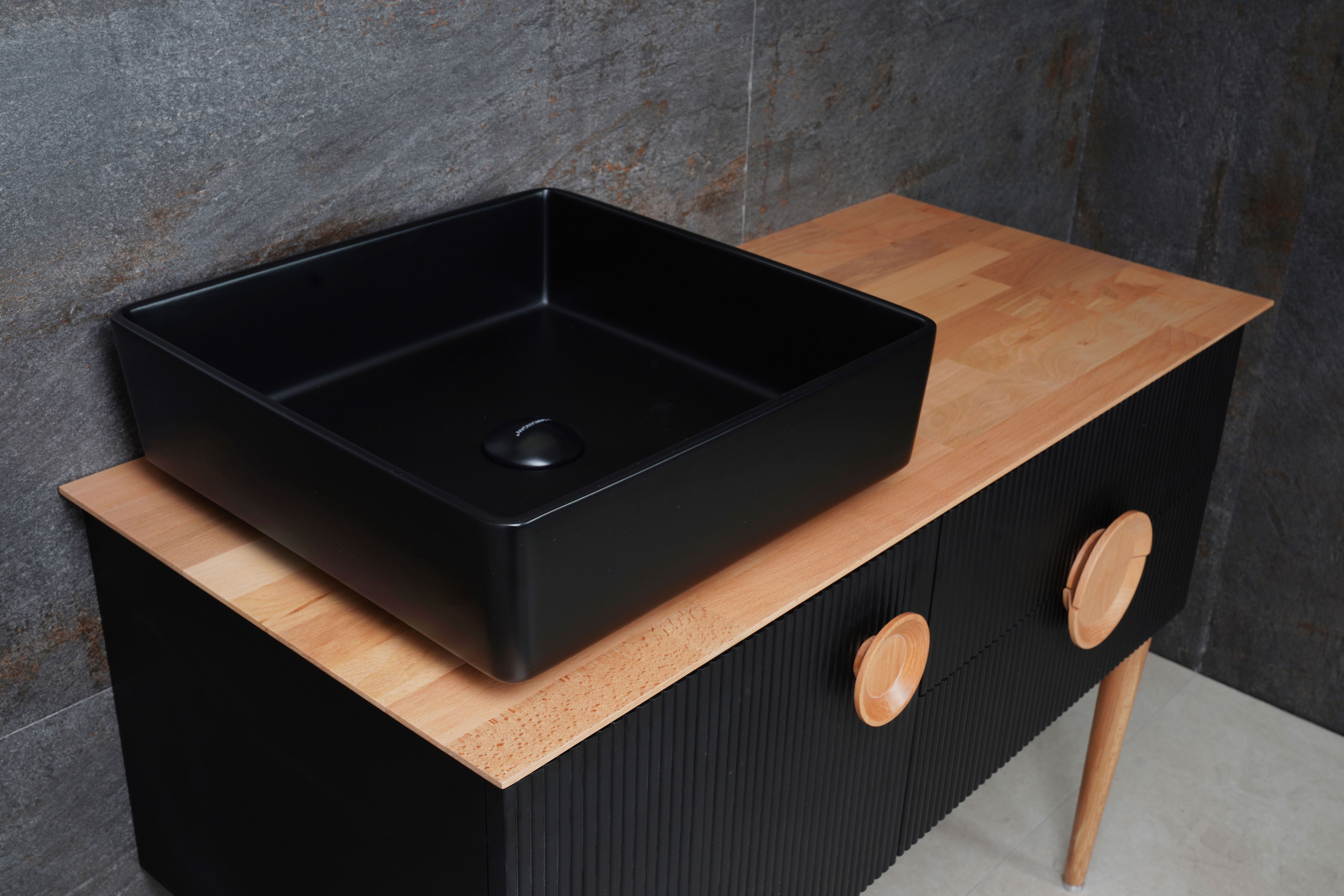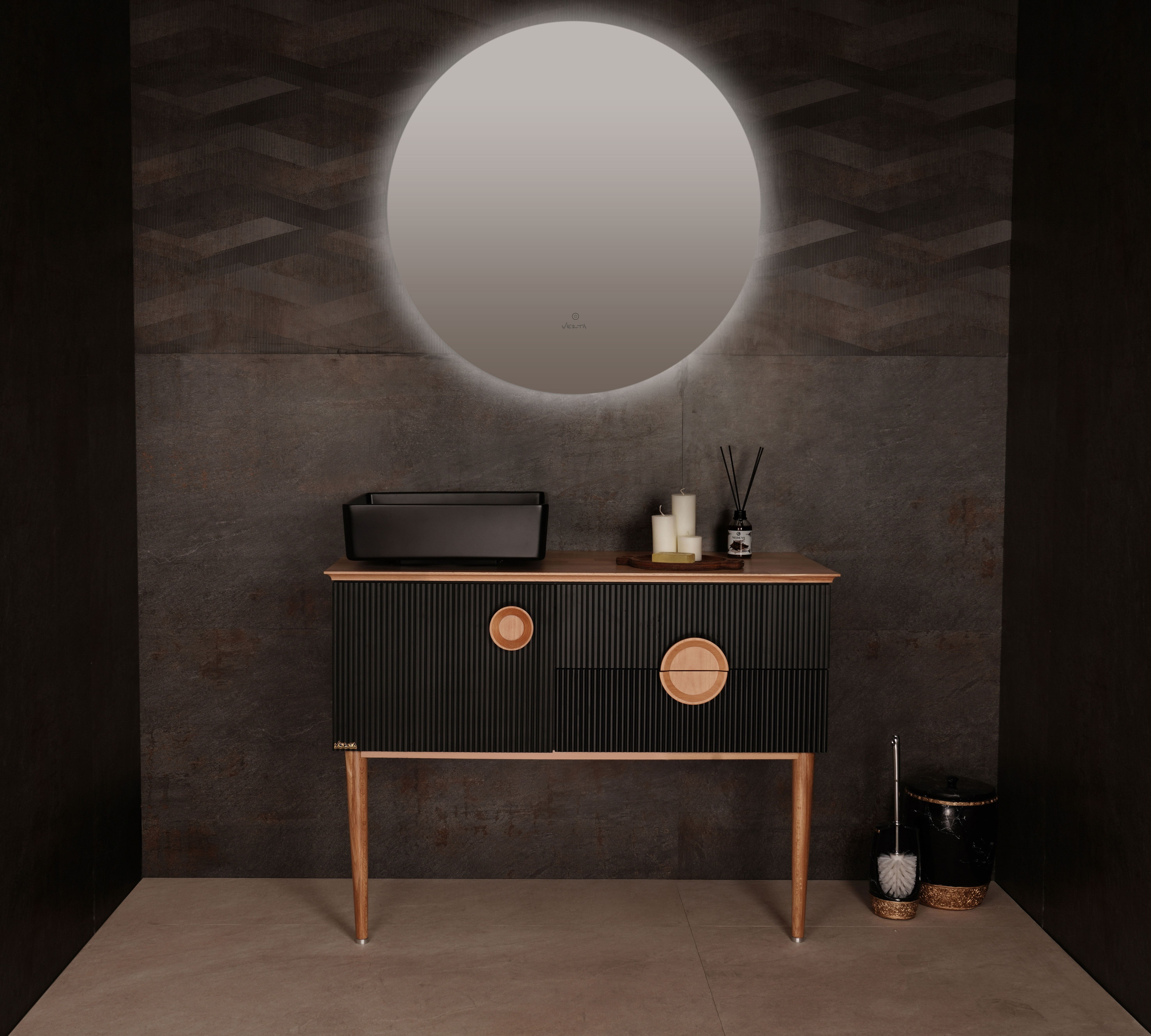 یکی از این علائم در طراحی مدرن خطوط ساده و بی آلایشی است که با کمک پرس و امباس روی درب کابینت کارلو نقش بسته است. این خطوط با سادگی تمام به دور از هرگونه تزئین و تجملات، طرحی ساده را بر روی یک روشویی مستیل شکل با دستگیره های دایره ای شکل که از جنس فینگر جوینت (یک نوع چوب فرآوری شده و مقاوم در مواجهه با آب و رطوبت از جنس چوب راش، چوب گردو و...) رقم زده است. صفحه روکابینتی فینگر جوینت به همراه پایه هایی از ترمو وود (نوعی دیگر از چوب فرآوری شده و مقاوم در مواجهه با آب و رطوبت) تولید شده و بدنه ای که از ورق پی وی سی 16 میلی متری با رنگ آمیزی رنگ پلیمری مات در رنگ های خنثایی مثل رنگ مشکی، سفید، طوسی و آبی که تجمع عناصری ارگانیک کنار هم هستند، باعث زیباتر شدن دکور فضای سرویس بهداشتی و حمام شما می شود که به آرامش هر چه بیشتر محیط در کنار رطوبت و آب کمک شایانی را می کند.
